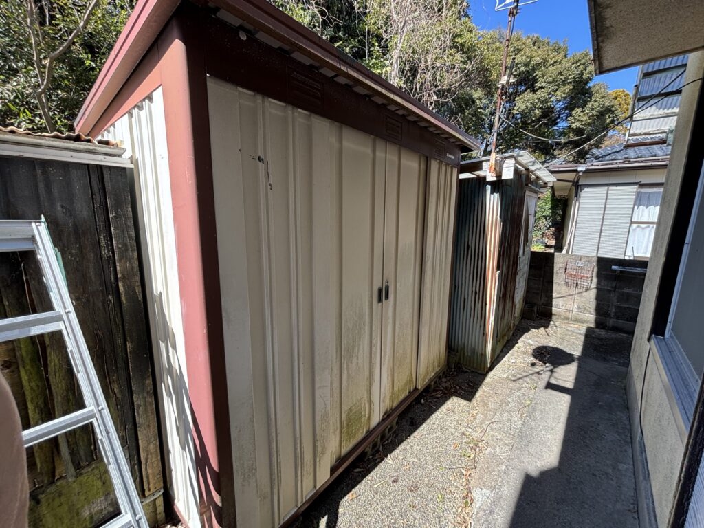 建物外側には隣接した倉庫(未登記)と物置が設置してあり、外回りの収納力も十分です。