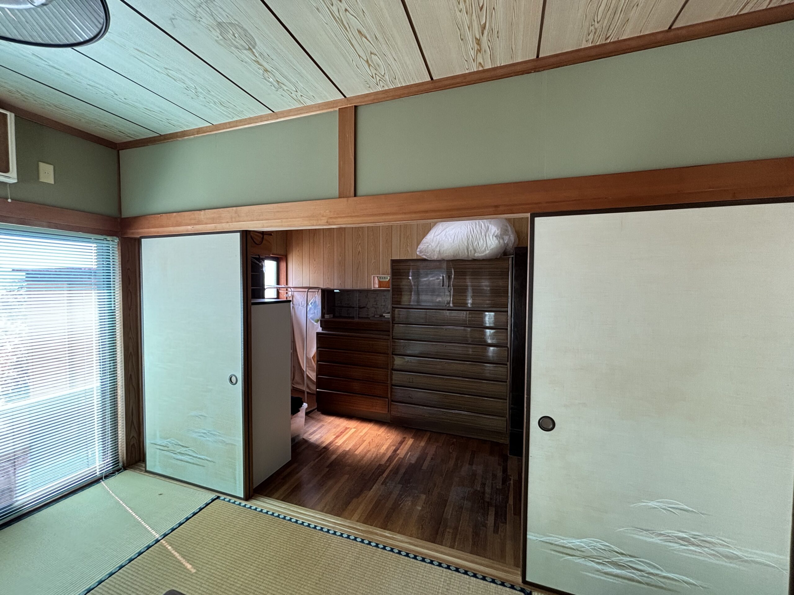 メインの和室は襖を抜くと開放感があり、南側の部屋は縁側と直結で日光が良く入ってきています。